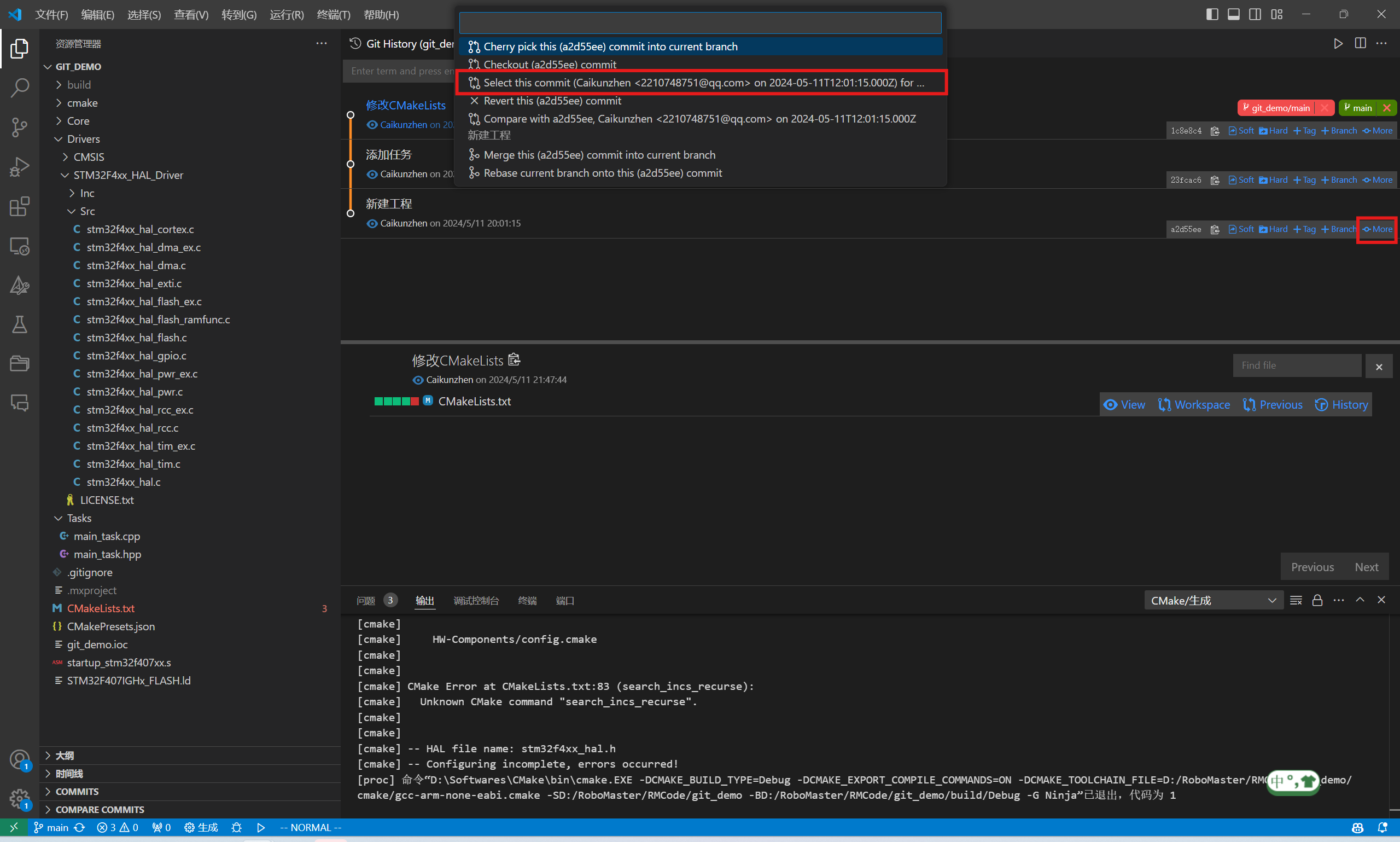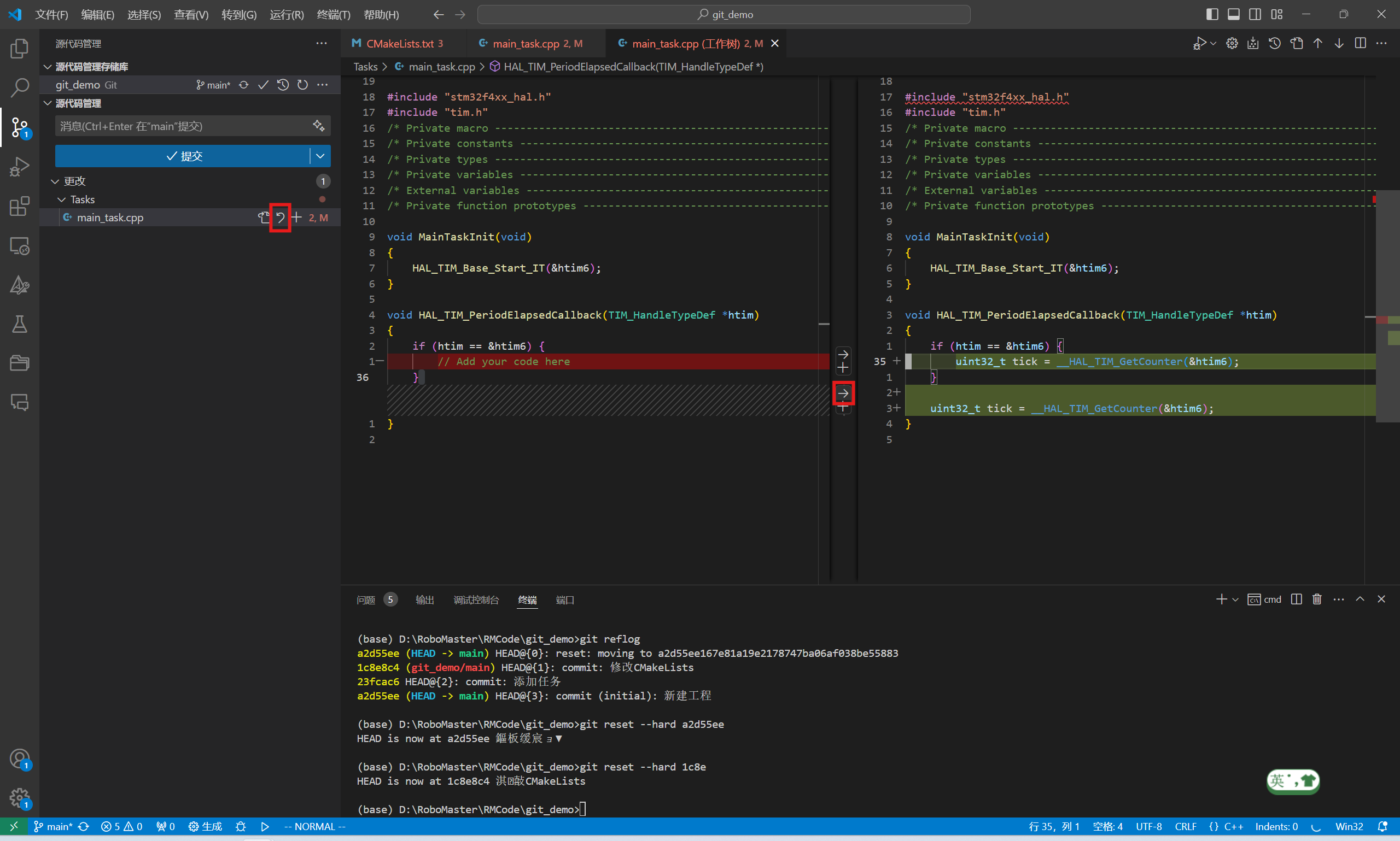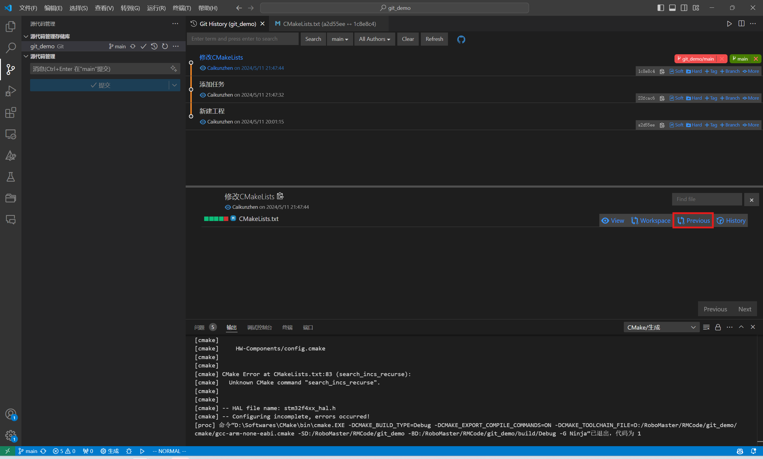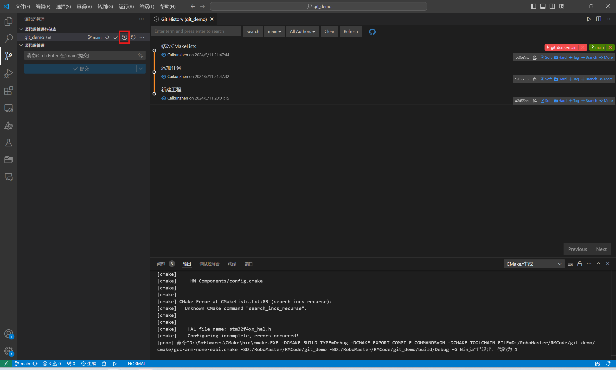 - 另一方面,在修改代码的过程中往往会出现问题,导致原先可用的版本在修改后无法正常使用,此时可通过Git比对代码的修改部分或是直接版本回退。而后者可保证在比赛前若当前代码仍存在问题,可快速回退得到可用代码,保证赛场上具有相对稳定的表现。同时Git的代码回退方式可避免通过保存诸多不同版本代码压缩包的方式。