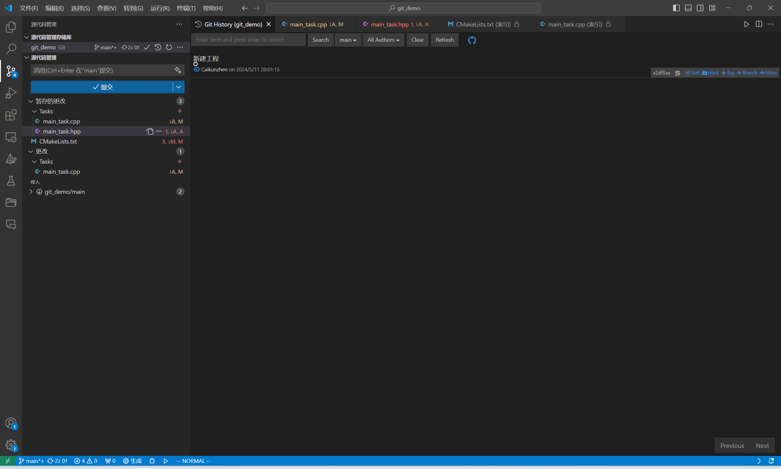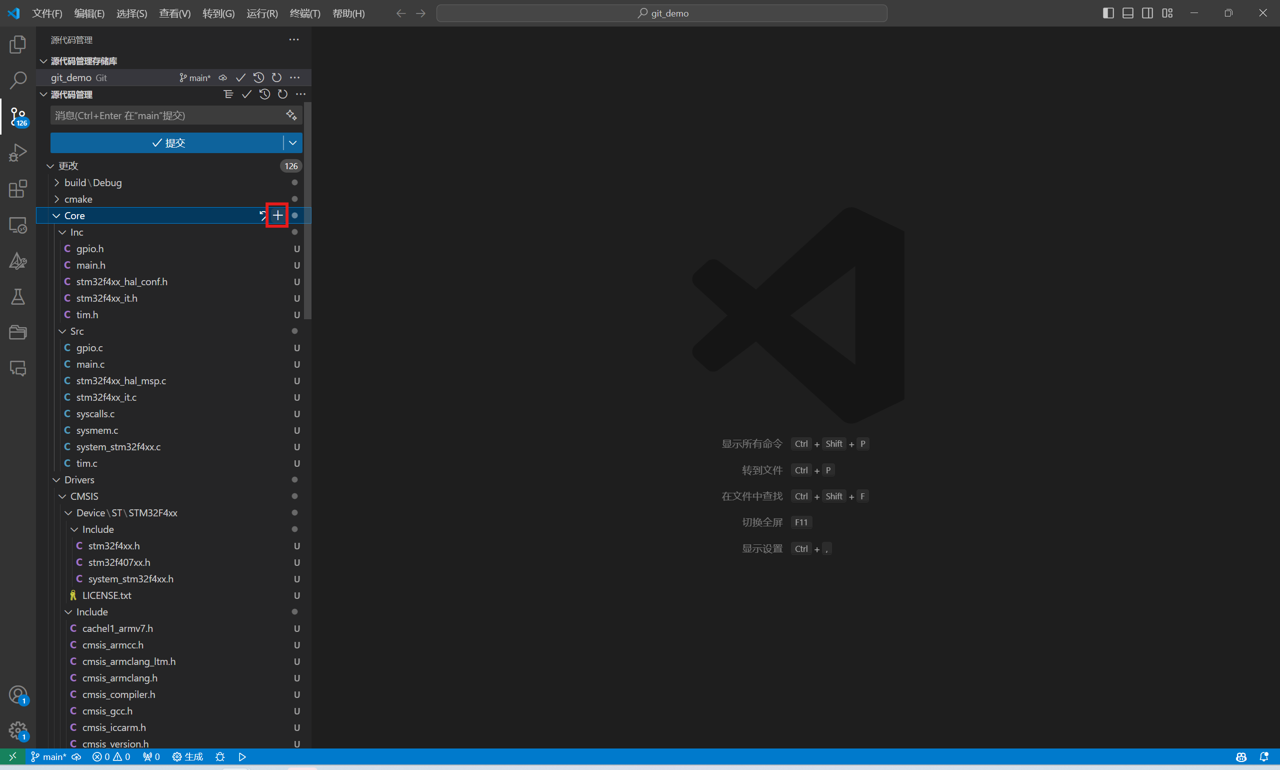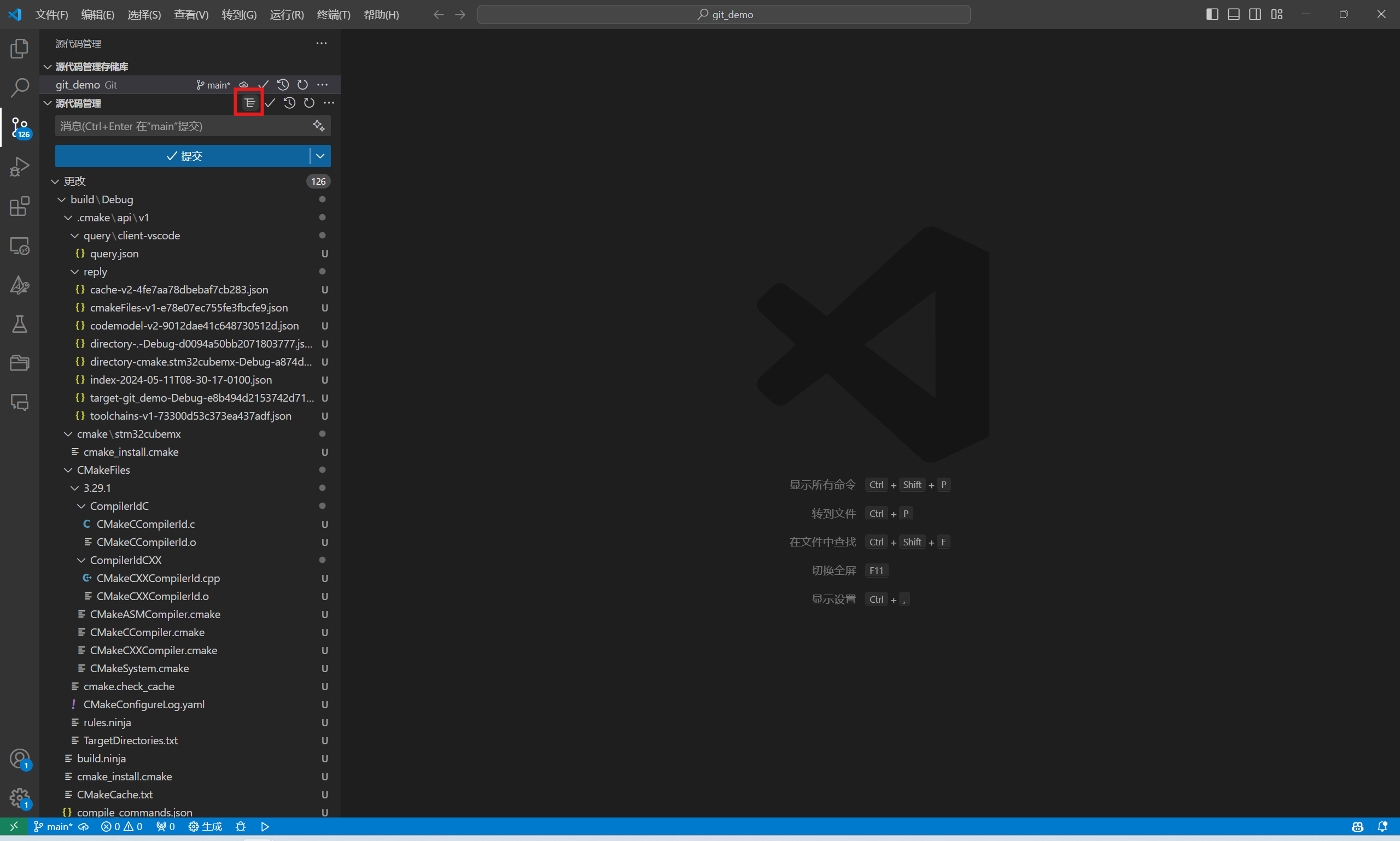 在初始化完仓库后可将后续修改的代码添加到仓库之中。为查看及添加修改的便利,可点击源代码管理栏右侧的"以树形式查看"按钮,将代码的修改显示为各个文件下的修改。
