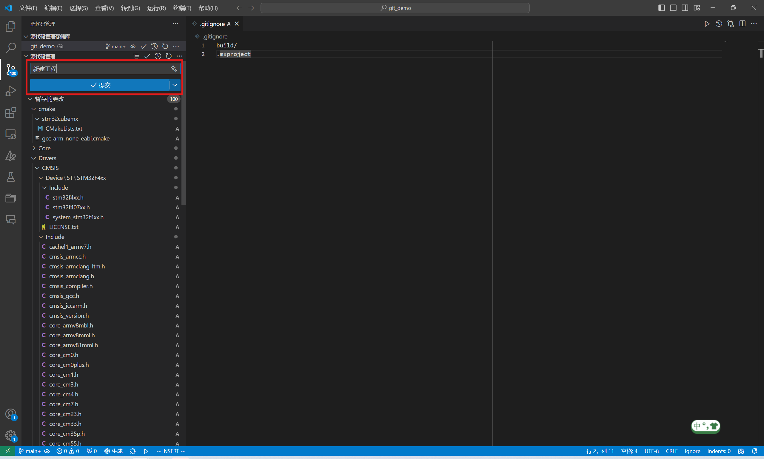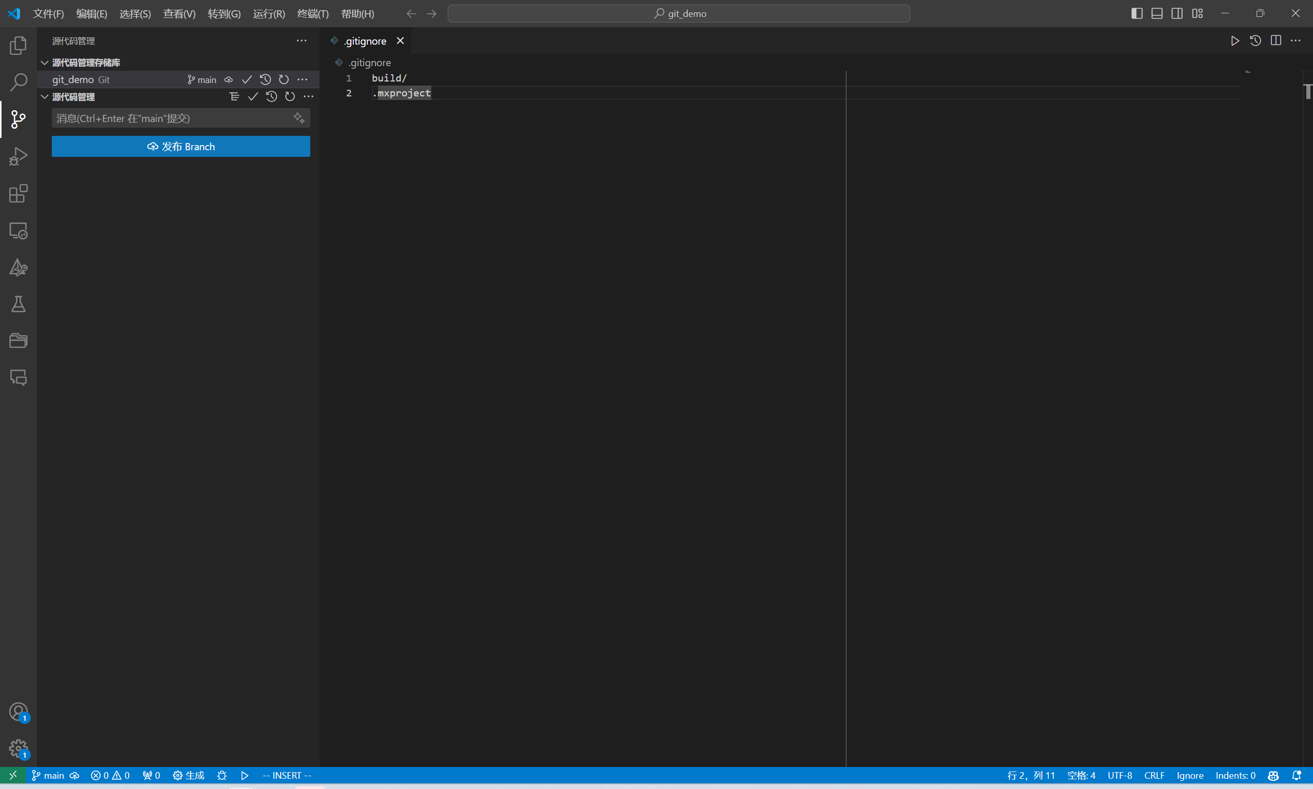 文件并在其中添加不进行跟踪的文件与文件夹的名称(文件夹需以 "/" 结尾),此后在源代码管理中便不会再显示相关文件。