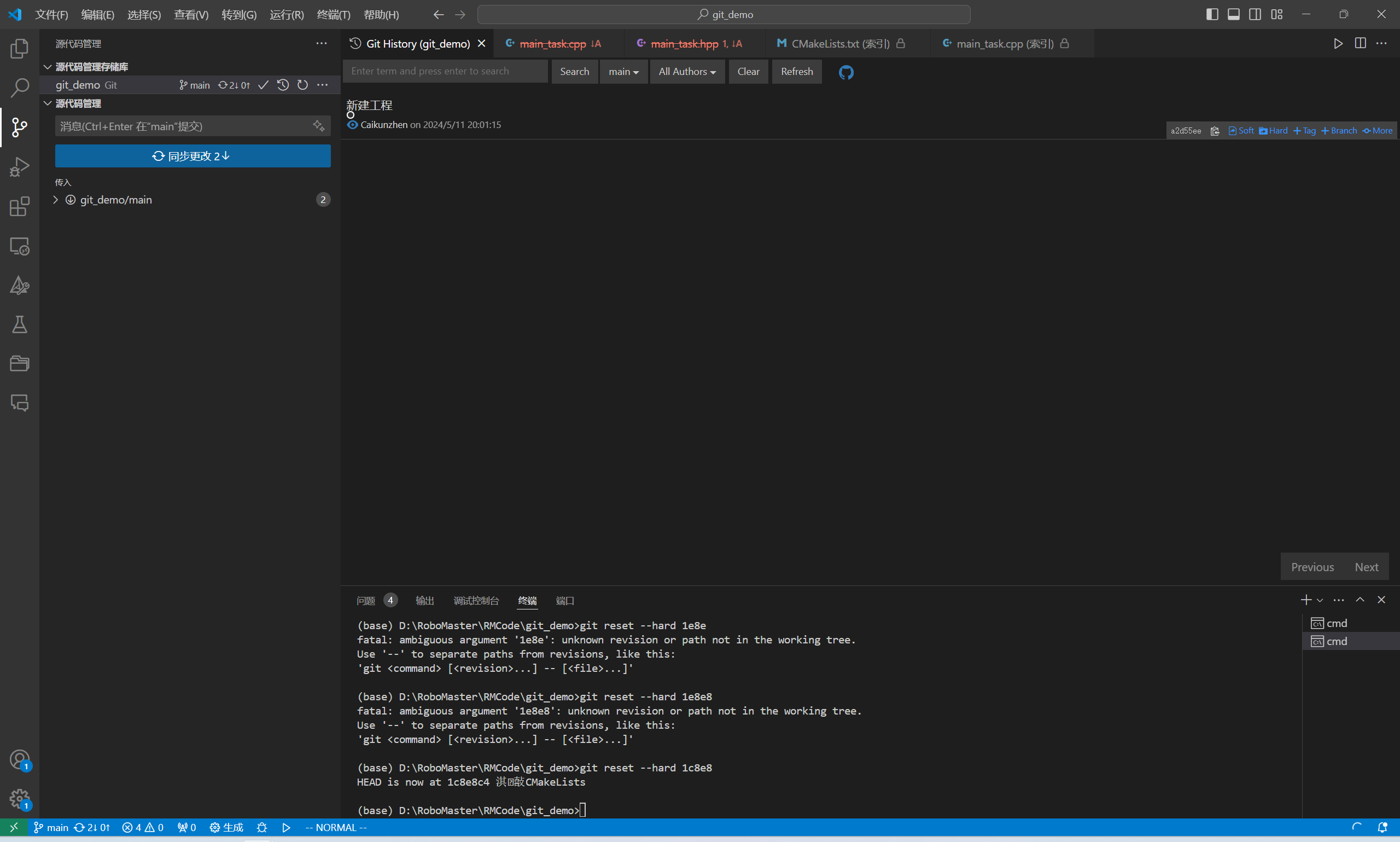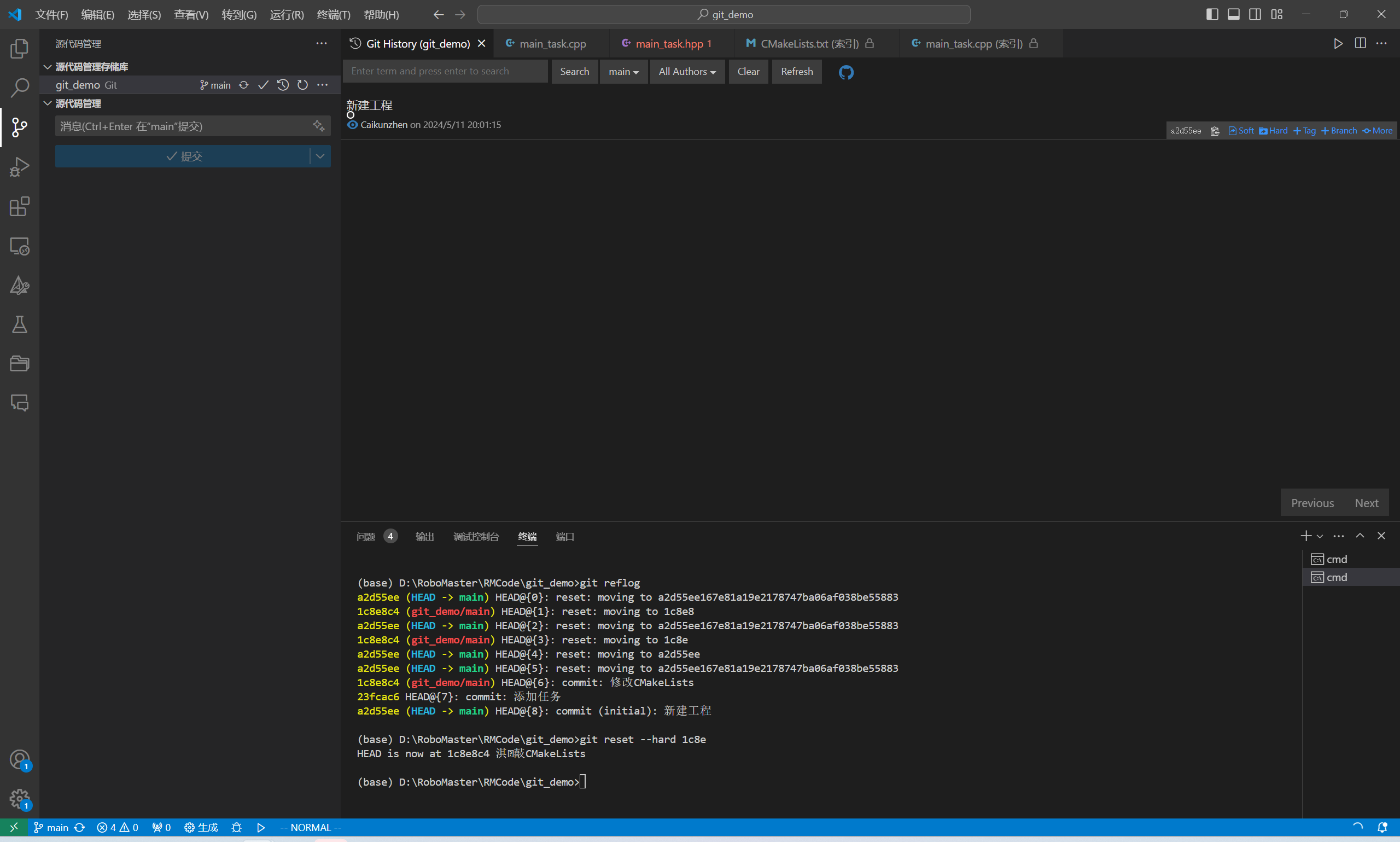 此时会显示出所有做出的操作,然后通过命令行进行将代码变至某次版本号。
