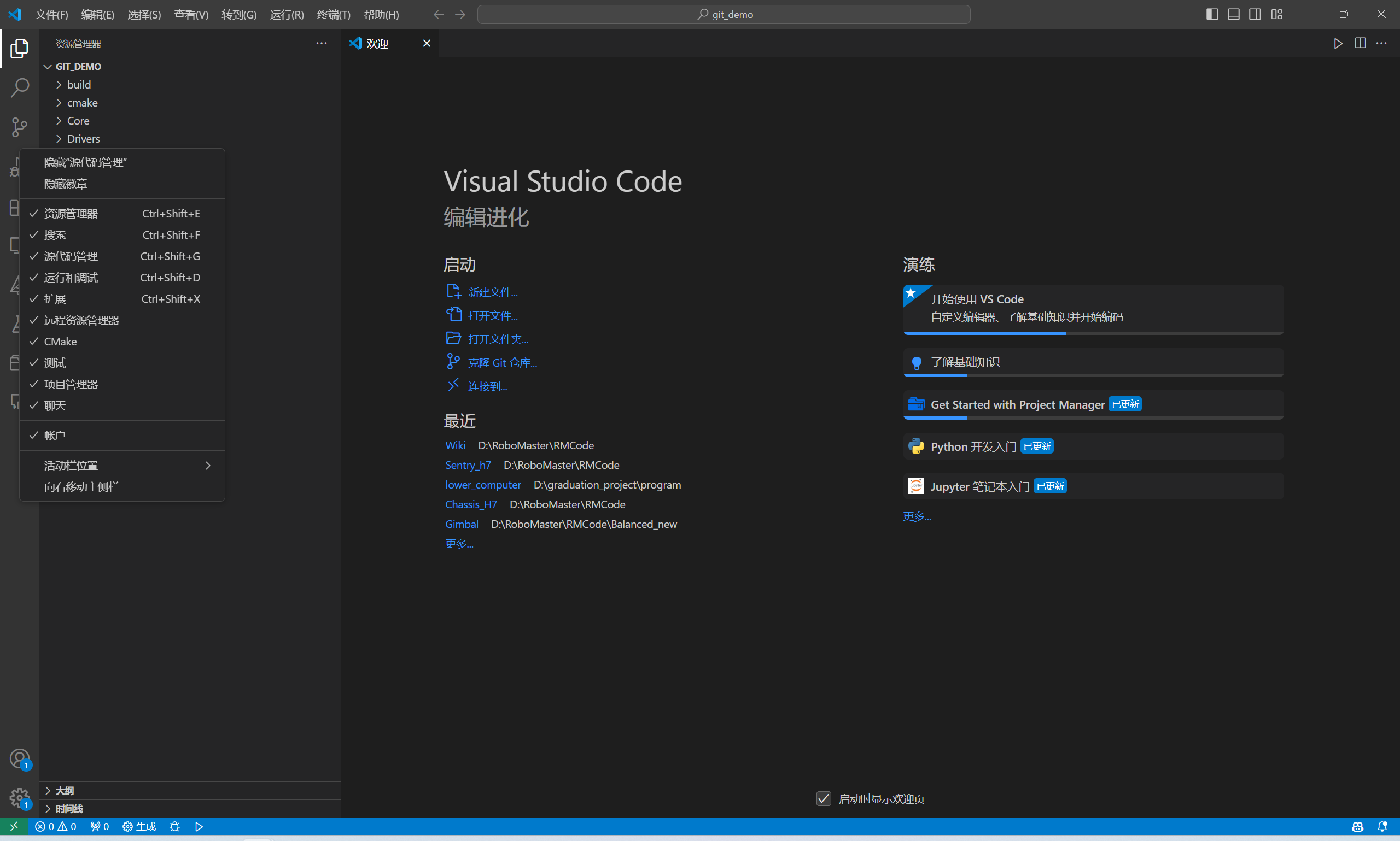 - VSCode 自带的源代码管理。若左侧菜单栏中未显示,可通过右键左侧菜单栏,勾选"源代码管理"调出。