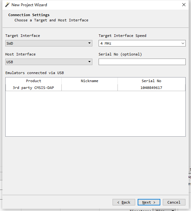 • 为了后续替换同时支持 J-Link 和 CMSIS-DAP 的驱动文件后能够正常运行,建议选择版本 V3.26