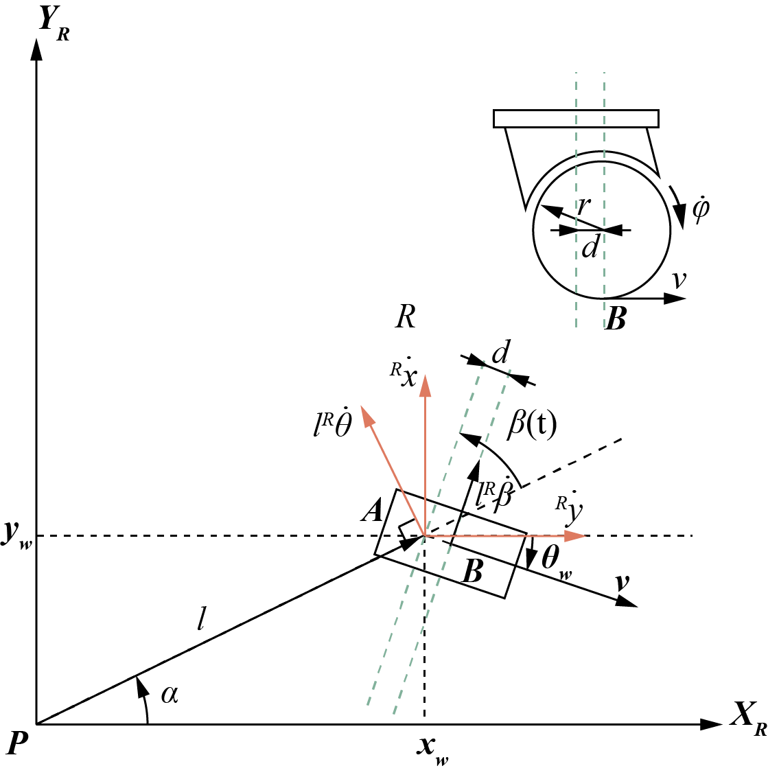 因为其控制较复杂,一般脚轮是作随动轮。此外,脚轮 \(\beta\) 角变化还会给机器人本身带来一定的转矩影响。